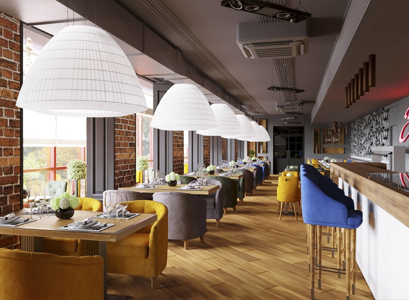 Дизайн-проєкт інтер'єрів ресторану "Зоря" у м. Миколаївка, Донецької обл.